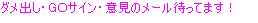| これはすでに現在実行中です。占いメール以外のメール交換はすべて無料なので、遠慮せず送信ボタンを押してください(笑) | |||||||||||||||||||